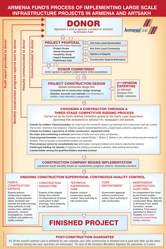 But who would ensure there weren’t back-door deals among the bidders or substandard firms placing bids they could never fulfill? Who would monitor every step of the process at an extra cost to guarantee that the schools being built for children, the roads being driven on by farmers, and the hospitals being used by veterans were built with the care and attention they deserved? Armenia Fund does.